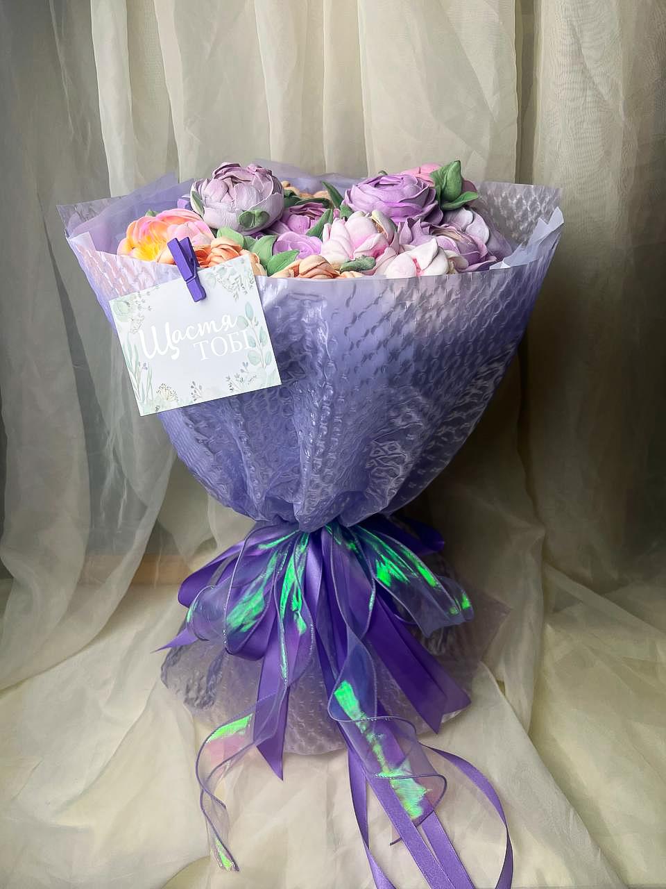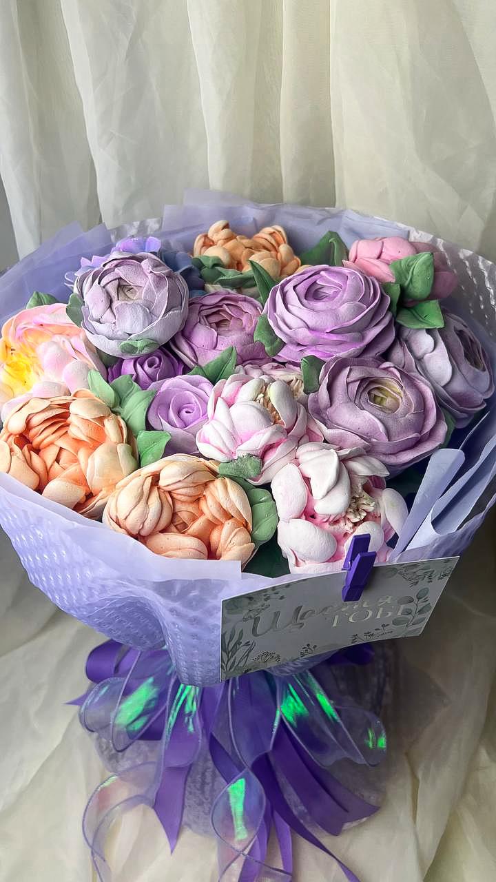 Мене звати Ірина, і я займаюся зефірною флористикою — створюю авторські букети та композиції з натурального зефіру.